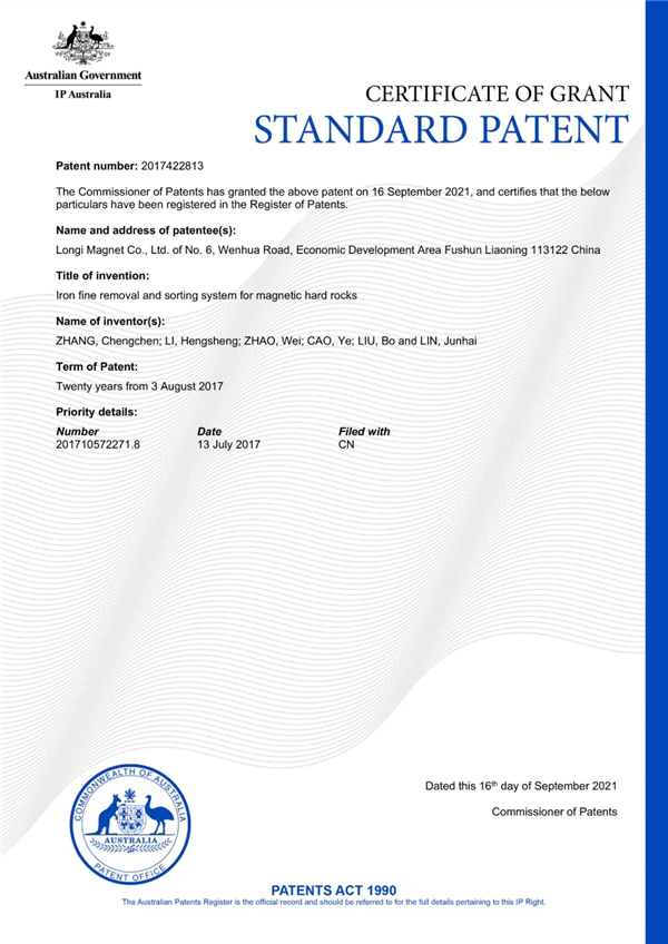 中國機械工業聯合會正式公布了2021 年度機械工業工程研究中心、重點實驗室考核結果,隆基電磁“機械工業磁選工程研究中心”再度通過考核評估。 2021-12-10