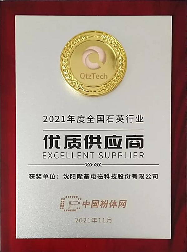 2021全國石英大會頒獎典禮隆重舉行,隆基電磁獲得“2021年度全國石英行業優質供應商”稱號。