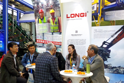隆基在這次展商云集、行業佼佼者齊聚的擂臺上嶄露頭角,向海內外客戶展示了磁力除鐵、磁力起重、磁力分選三大系列產品的海外應用現場,為觀眾呈現了隆基堅持不懈的國際化品牌戰略和制造高品質產品的能力。本次展會上,行業內眾多知名品牌齊聚上海,營造出一場令人驚艷的品牌浪潮。阿特拉斯、殼牌、沃爾沃、米其林、維特根、三一、柳工、徐工、中聯重科、世邦機器等閃耀現場。作為磁性裝備制造業的領軍企業,隆基將主打產品中的磁選機、立環強磁機、磁懸浮精選機、干選機、除鐵器、起重電磁鐵在國際現場的應用畫面展示給大家,隆基品牌以其能力突出、作業效率高、環保節能、可靠耐用的特點受到眾多國際用戶的青睞,已在國際市場上占有相當的地位。