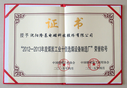 早在2010年10月,隆基就獲得了“2009年度煤炭工業(yè)十佳選煤設(shè)備制造廠”稱號,是磁性裝備制造行業(yè)中唯一入選單位。本次獲獎是隆基第二次獲此殊榮,也是行業(yè)內(nèi)唯一獲此榮譽(yù)的單位。會議還表彰了2014年度中國煤炭工業(yè)協(xié)會科學(xué)技術(shù)特等獎和一等獎的獲獎項(xiàng)目和個人、首屆中國煤炭工業(yè)專利獎、2012-2013年度煤炭工業(yè)十佳選煤廠、十佳選煤廠廠長和煤炭工業(yè)節(jié)能減排先進(jìn)企業(yè)(單位)和先進(jìn)個人。